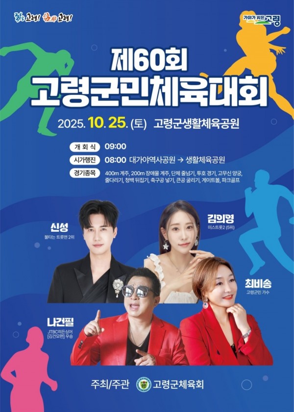 제60회 고령군민체전 (10/25 ~ 10/25) 작성자 최고관리자 작성일25-10-02 13:11 조회6회 댓글0건 이전글 다음글 목록 장소 : 생활체육공원 댓글목록 등록된 댓글이 없습니다. 이전글 다음글 목록